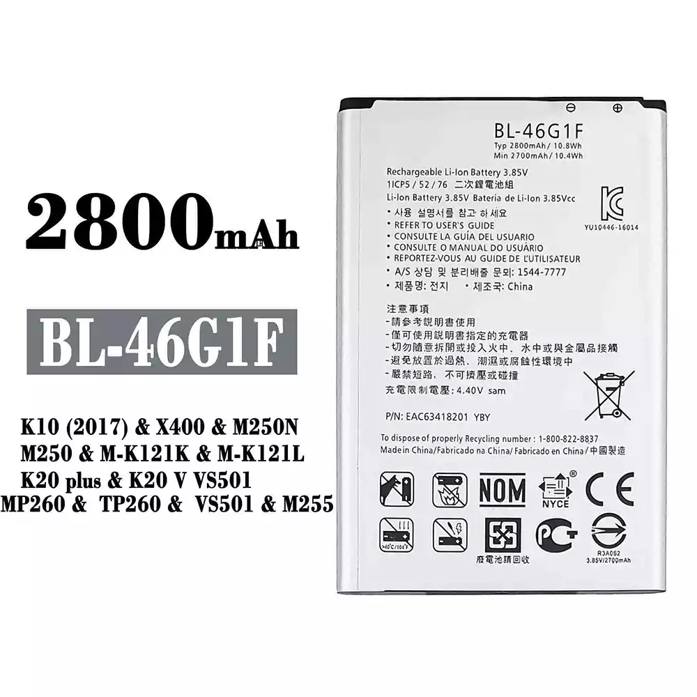 Baterija BL-46G1F priekš LG K10 (2017) / X400 / M250N / M250 / M-K121K / M-K121L / K20 plus / K20 V VS501 / MP260 / TP260 / VS501 / M255