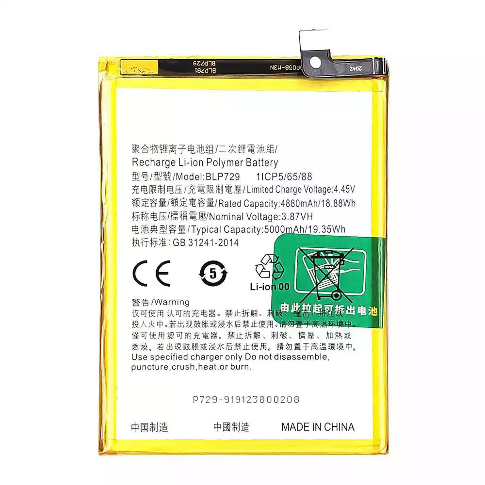 Oriģināls baterija BLP729 priekš OPPO Realme 5 / Realme 5i / Realme 5s / Realme C3 / Realme C3 (3 cameras) / Realme C11 2020 / Realme C21 / Realme C21Y / Realme C20