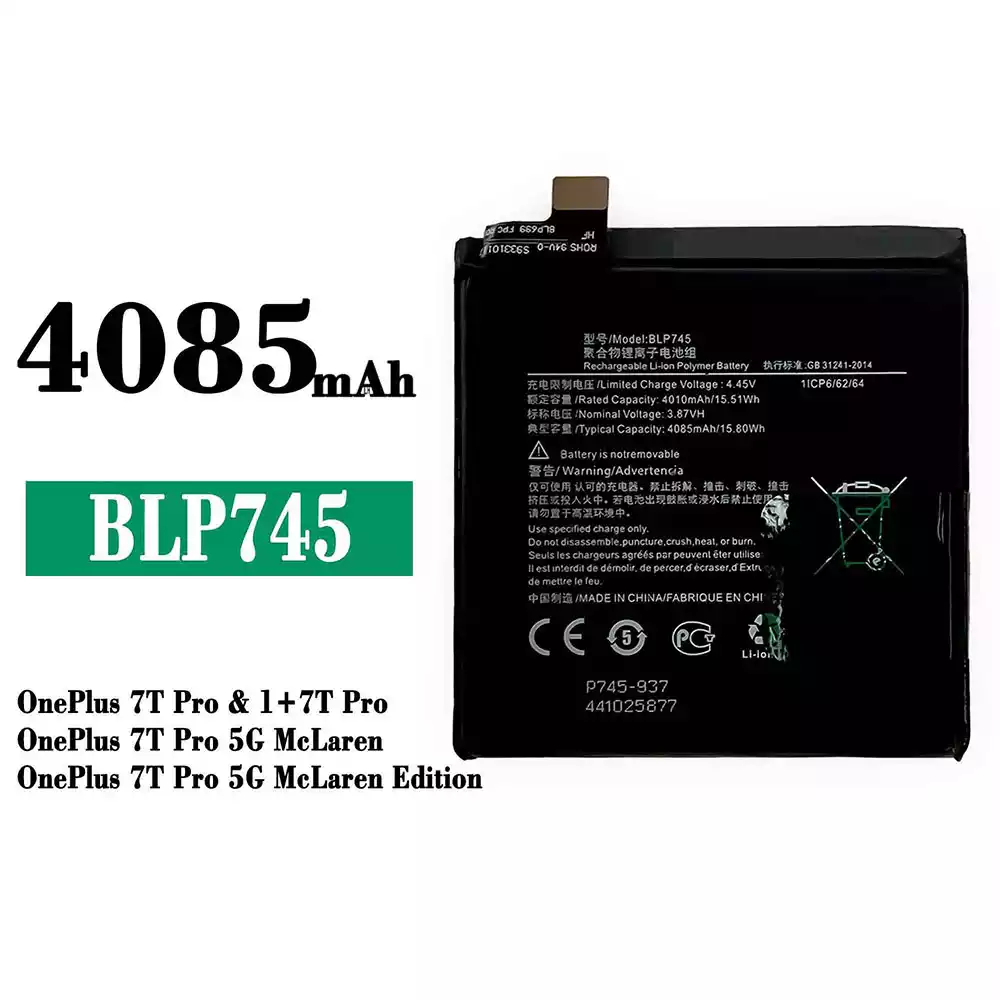 Baterija BLP745 priekš OPPO OnePlus 7T Pro / 1+7T Pro / OnePlus 7T Pro 5G McLaren / OnePlus 7T Pro 5G McLaren Edition