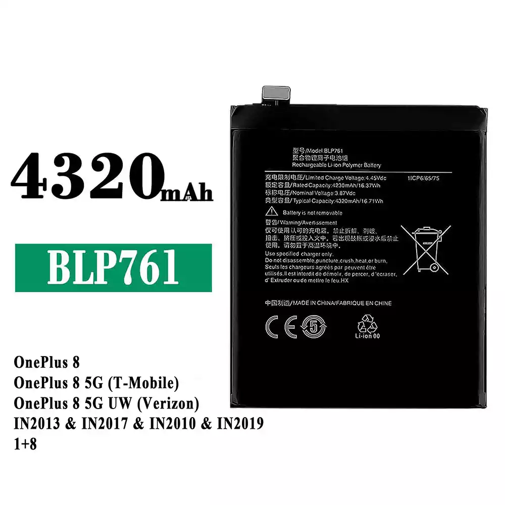 Baterija BLP761 priekš OPPO OnePlus 8 / OnePlus 8 5G (T-Mobile) / OnePlus 8 5G UW (Verizon) / IN2013 / IN2017 / IN2010 / IN2019 1+8