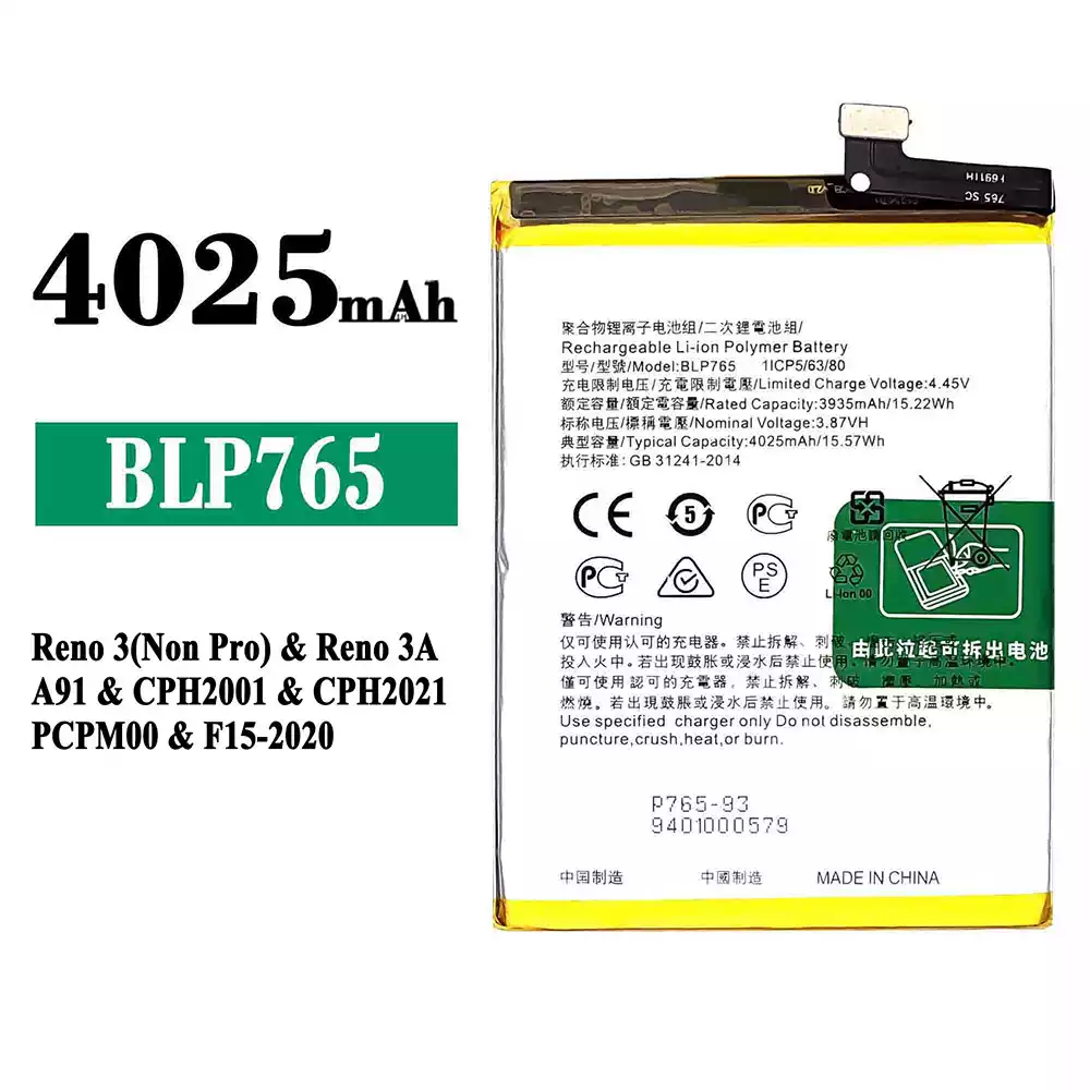 Baterija BLP765 priekš OPPO Reno 3(Non Pro) / Reno 3A / A91 / CPH2001 / CPH2021 / PCPM00 / F15-2020