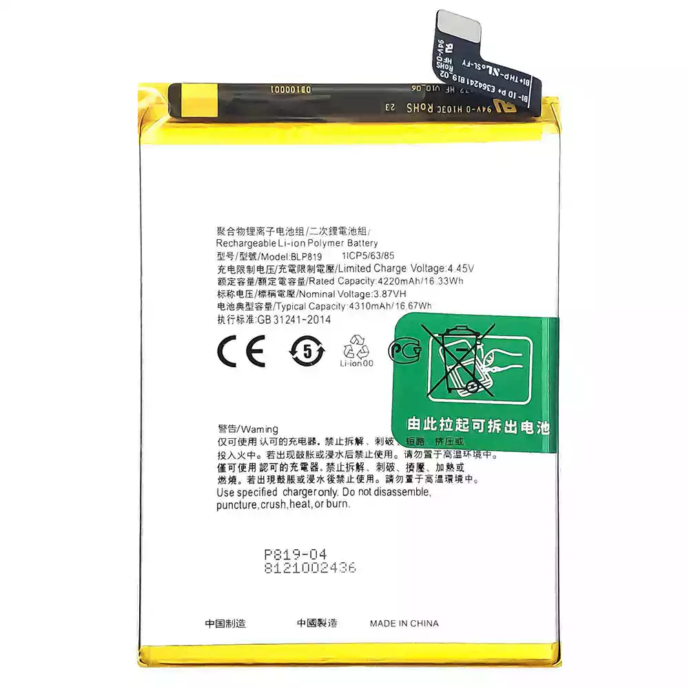 Baterija BLP819 priekš OPPO Reno 5 4G /Reno 6 4G /F19 Pro Plus /Reno 5 Lite /Reno 5Z
