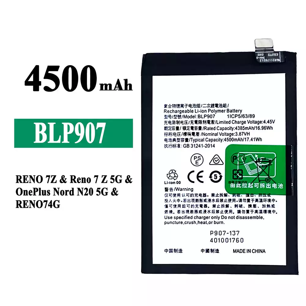 Oriģināls baterija BLP907 priekš OPPO RENO 7Z / Reno 7Z 5G / RENO 7 4G / RENO 8 4G /OnePlus Nord N20 5G