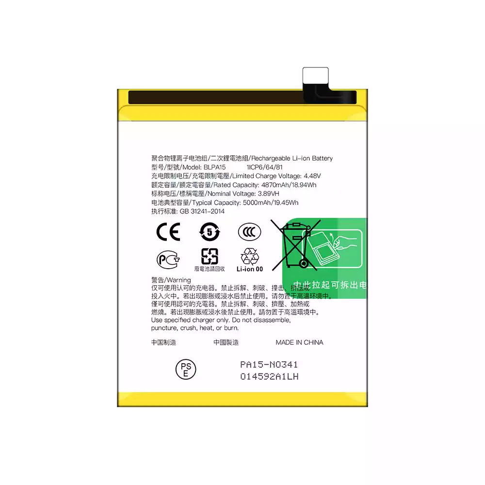 Baterija BLPA15 priekš OPPO Realme 11 5G / Realme 11Pro 4G 5G / Reno 11 5G / Reno 11 Global version