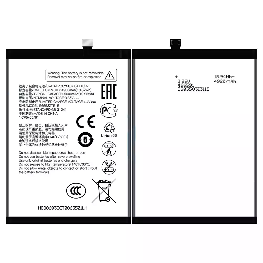 Oriģināls baterija E6553ZTE-B priekš ZTE V50