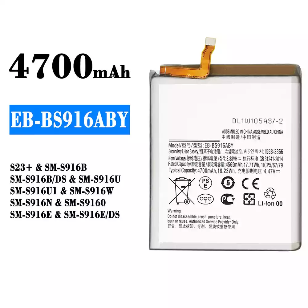 Baterija EB-BS916ABY priekš Samsung S23+/SM-S916B/SM-S916B DS/SM-S916U/SM-S916U1/SM-S916W/SM-S916N/SM-S9160/SM-S916E/SM-S916E DS