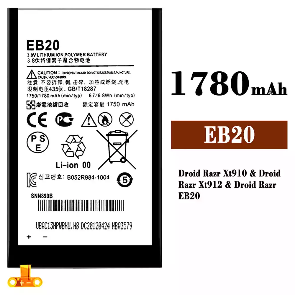 Oriģināls baterija EB20 priekš Motorola Droid Razr Xt910 / Droid Razr Xt912 / Droid Razr EB20